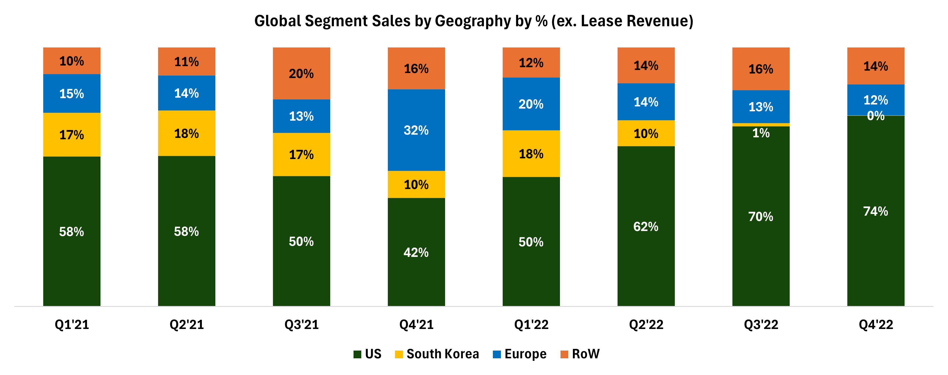 However, starting in Q2’22, South Korea started posing problems for LNSR sales because there ended up being a dispute between 3rd party payers and healthcare providers which eventually made procedures there non-existent (below).